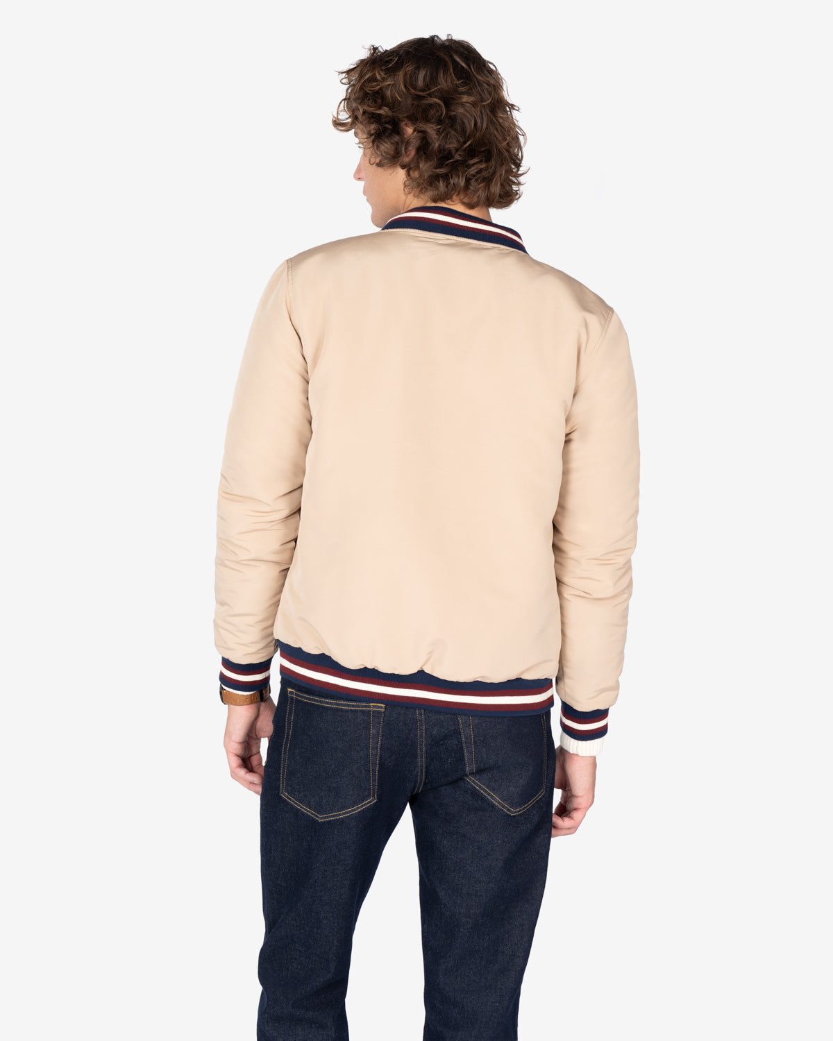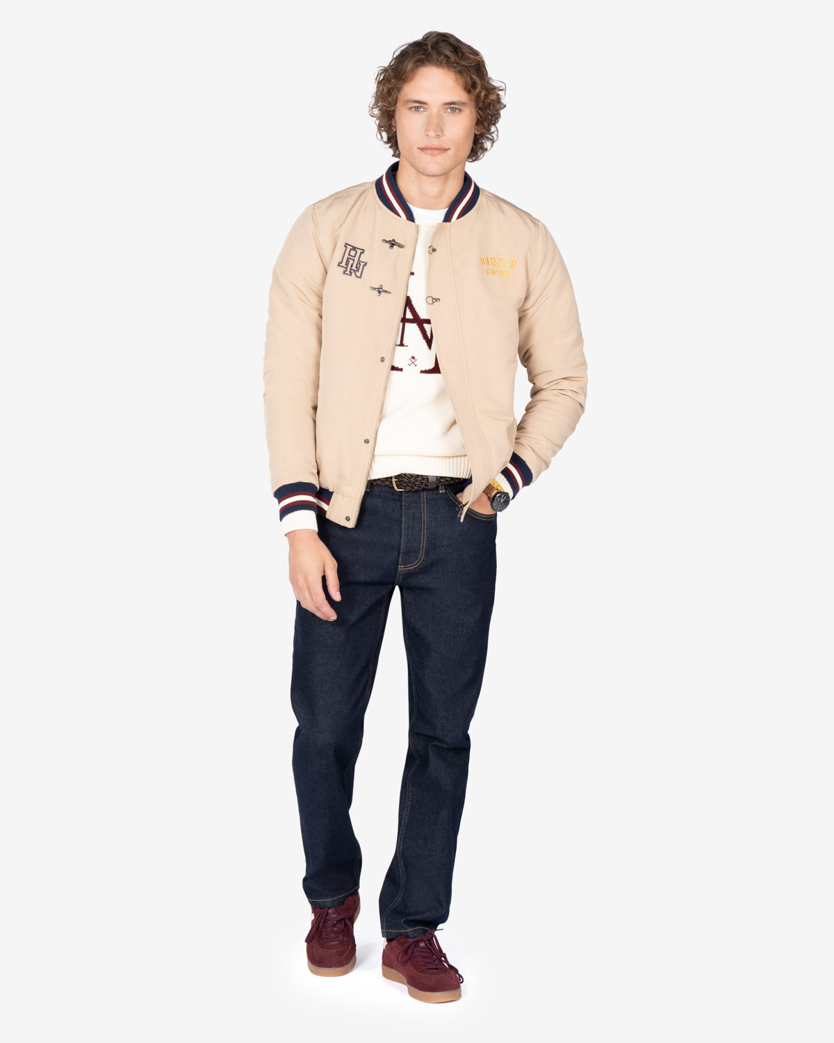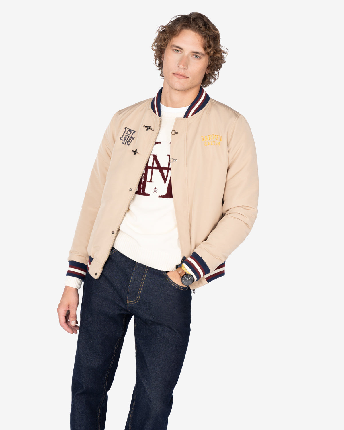 Una prenda con inspiración varsity que rinde homenaje al estilo universitario americano. Combínala con sudadera y vaqueros para un look juvenil con carácter o con camisa y chinos para un outfit preppy de impacto.