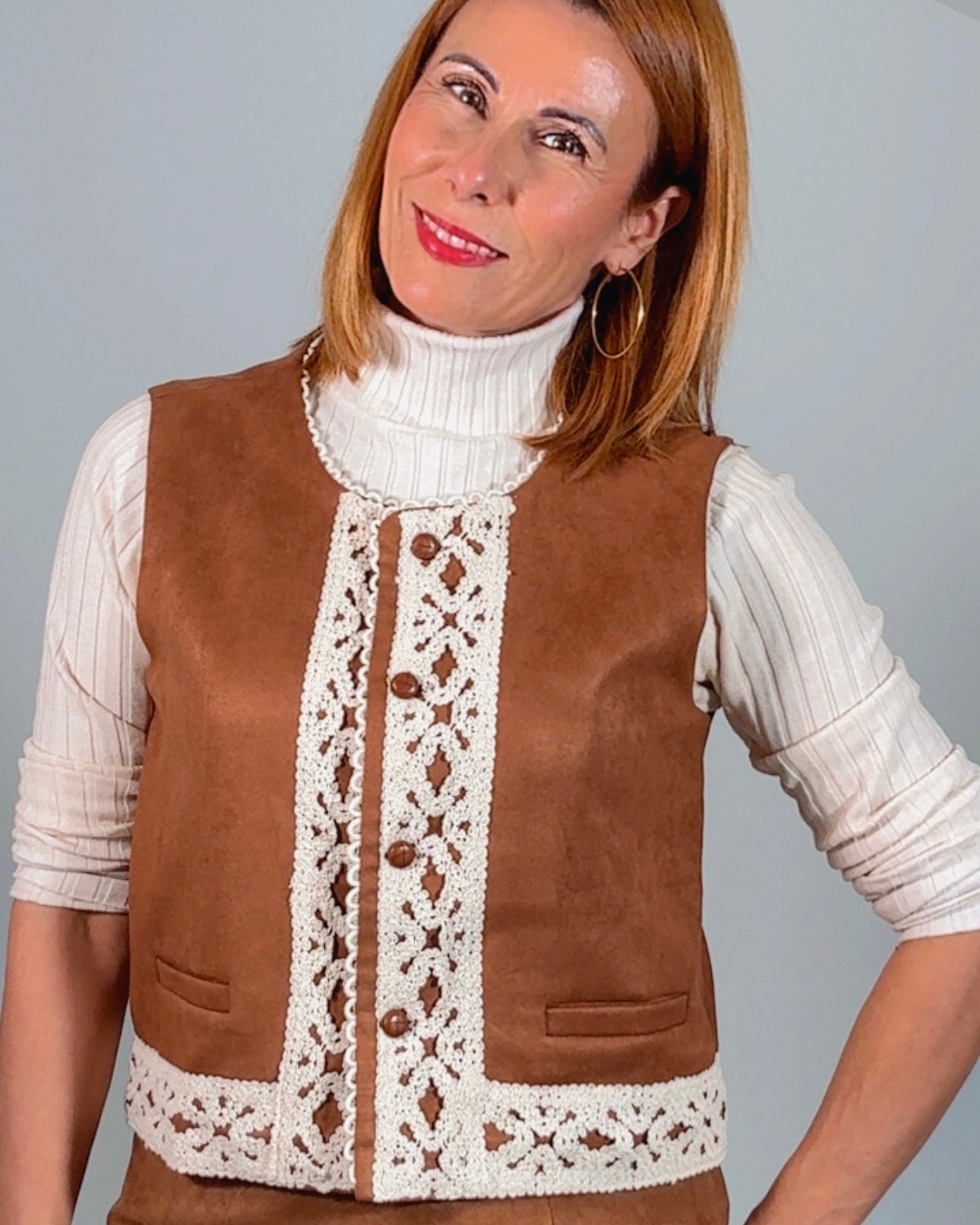 Chaleco antelina puntilla