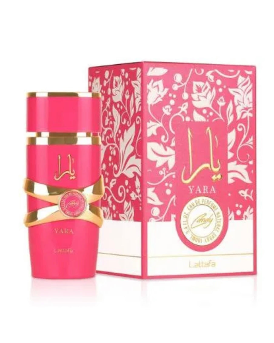 Yara Candy de Lattafa Perfumes es una fragancia de la familia olfativa Floral Frutal Gourmand para Mujeres. Esta fragrancia es nueva. Yara Candy se lanzó en 2024. Las Notas de Salida son grosellas negras y Mandarina verde; las Notas de Corazón son Strawberry Fizz Candy y gardenia; las Notas de Fondo son vainilla, almizcle, ámbar y sándalo.